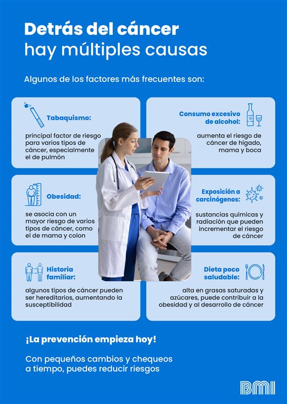 Las causas del cáncer pueden ser múltiples y, en muchos casos, no responden a un solo factor. Existen elementos que no se pueden modificar, como la edad, la genética o ciertos antecedentes familiares. Sin embargo, también hay factores de riesgo relacionados con el estilo de vida, como el consumo de tabaco, sedentarismo, una alimentación poco equilibrada y la exposición excesiva al sol o al alcohol.